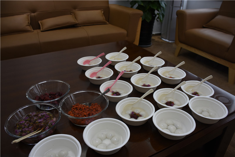 節(jié)日當(dāng)天,盡管天氣寒冷,三分公司辦公室內(nèi)卻春意盎然,熱氣騰騰。綜合辦的小伙伴們早早地來到公司忙碌起來。熱水燒開,湯圓下鍋,糯米團子在水里歡快地翻滾著,仿佛寓意著今年公司的業(yè)績蒸蒸日上。盛出一碗熱氣騰騰的湯圓,再放上一顆紅棗,兩朵玫瑰,三粒枸杞,好看又美味的湯圓承載著美好的節(jié)日祝福,被親手送到每位“家人”手中。正所謂湯圓香香誘人饞,情意濃濃暖心間,看著大家臉上的笑容,仿佛還沒吃就甜到了心里,讓大家感受到了濃濃的“家”的溫暖。
