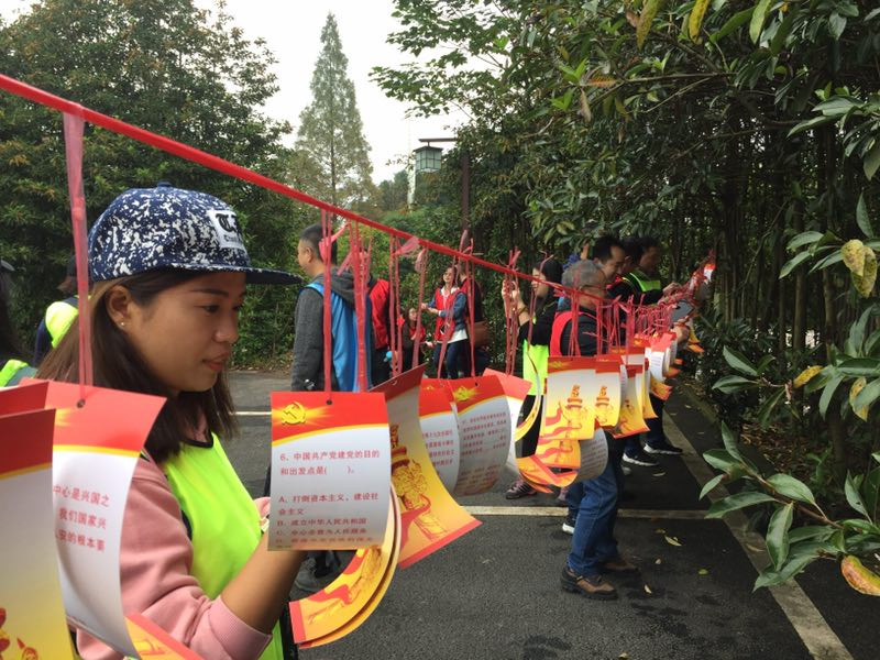 27日下午,我們來到有著光榮革命歷史的華鎣山,這里曾是中共華鎣山地下黨和華鎣山游擊隊(duì)從事武裝斗爭(zhēng)的根據(jù)地,華鎣山的每一寸熱土都銘刻了革命先烈拋頭顱、灑熱血的壯烈事跡。在爬山前,大家重溫入黨誓詞,我們要牢記黨的使命和任務(wù)不懈奮斗。同時(shí),我們規(guī)劃了紅色路線游覽圖,在每個(gè)關(guān)鍵節(jié)點(diǎn)設(shè)置紅色革命知識(shí)答題環(huán)節(jié),讓隊(duì)員們深入學(xué)習(xí)游擊隊(duì)的抗?fàn)帤v史,銘記先輩的艱難歲月,鼓勵(lì)我們當(dāng)代黨員和積極分子鼓足干勁,以積極的態(tài)度對(duì)待工作和生活。