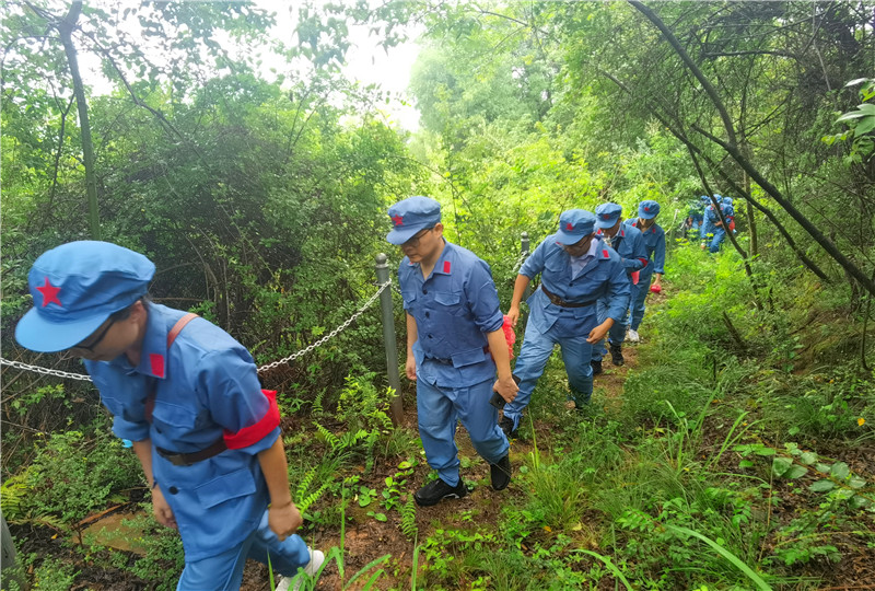 “西風(fēng)烈,長空雁叫霜成月。霜成月,馬蹄聲碎,喇叭聲咽。雄關(guān)漫道真如鐵,而今邁步從頭越.....”這是毛主席《議秦娥·婁山關(guān)》中的詩句,描述長征的艱辛。大家穿上紅軍服、戴上紅軍帽,開始了重走長征路活動(dòng)。“部隊(duì)”徒步經(jīng)過了崎嶇的山路,爬上陡峭的山峰,歷時(shí)4個(gè)小時(shí),用自己堅(jiān)毅的腳步感受著革命先輩們艱苦奮斗、百折不撓的革命精神。為重現(xiàn)當(dāng)年長征情景,模擬了“遵義會(huì)議”、“過草地”、“爬雪山”等項(xiàng)目。分公司黨總支書記賈先文對各位黨員同志提出要求:一是不忘初心使命,學(xué)習(xí)傳承革命先烈精神。二是錘煉黨性品質(zhì),不斷增強(qiáng)自身理想信念。三是立足崗位履職,充分發(fā)揮先鋒模范作用。四是提升綜合素質(zhì),勇?lián)髽I(yè)改革發(fā)展重任。