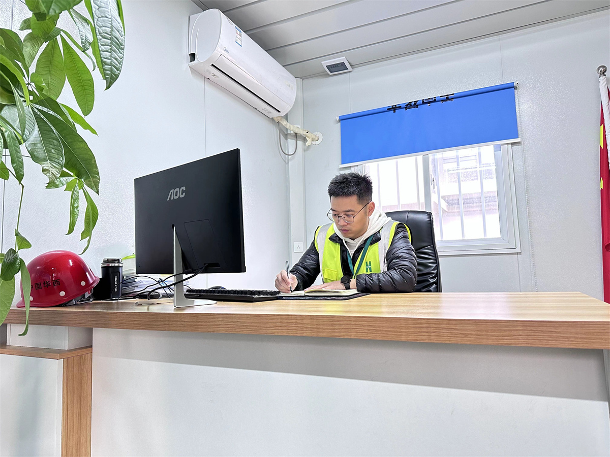 與很多豪爽粗放風(fēng)格的項(xiàng)目經(jīng)理不太一樣,對(duì)郭天印的第一印象是文質(zhì)彬彬、西裝革履說(shuō)話不緊不慢,要不是黝黑的膚色這個(gè)建筑人的標(biāo)志性特點(diǎn),真會(huì)誤以為他是一名辦公室白領(lǐng)。郭天印經(jīng)過(guò)自己堅(jiān)持不懈的努力,通過(guò)了公司考核,成為了華西正式員工。郭天印說(shuō),他特別珍惜這份來(lái)之不易的合同,當(dāng)簽下正式合同那一刻,他覺(jué)得這既是肯定,更是鞭策。郭天印給自己寫下了一份承諾書(shū),承諾兩年內(nèi)拿到BIM一二級(jí)證書(shū),且考過(guò)一級(jí)建造師證書(shū)。最終他兌現(xiàn)了諾言,盡管比預(yù)期晚了半年。努力和堅(jiān)持的成果雖然會(huì)遲到,但肯定不會(huì)缺席。