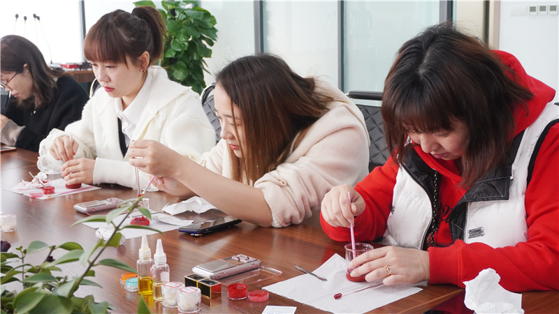 活動首先進行的是口紅DIY,在老師的指導(dǎo)下,通過色粉攪拌均勻、加熱融化、倒模成型,制作出了心儀的口紅;隨后是花藝課程,女職工們心靈手巧,插出了一籃籃送給自己的鮮花。大家紛紛表示,活動生動有趣,既豐富了女職工的業(yè)余生活,又營造了濃厚的節(jié)日氛圍,充滿儀式感。