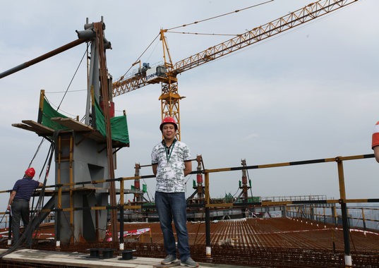 今年的六一兒童節(jié),恰逢連廊提升的第2天,為了確保起吊過(guò)程的萬(wàn)無(wú)一失,項(xiàng)目安排了他當(dāng)晚在現(xiàn)場(chǎng)值班??墒?,范哥5歲的兒子還等著爸爸下班后去為他的首次演出加油,大伙兒都勸說(shuō)他和同事?lián)Q班,去陪兒子過(guò)節(jié)??墒牵陡缯f(shuō):“兒童節(jié)今年過(guò)了明年還有,而連廊提升是頭等大事,若是有什么閃失,我怎么向項(xiàng)目交代,怎么向公司交代,我自己也會(huì)內(nèi)心難安的。”說(shuō)完,便繼續(xù)投入工作。三十多公里的歸家路并不遙遠(yuǎn),他卻選擇了堅(jiān)守崗位,放下了與子同樂(lè)。也許兒子會(huì)暗自傷心,但是在他長(zhǎng)大之時(shí),他一定會(huì)理解父親此刻的選擇。責(zé)任,是男人一輩子都不能背棄的誓言!