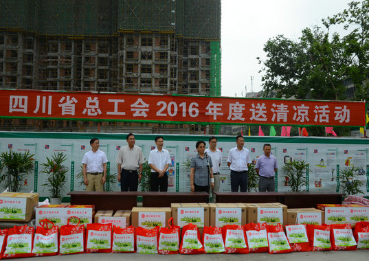 活動現(xiàn)場李登菊表示,省總工會冬送溫暖,春送崗位,夏送清涼、秋送助學(xué)“四季送”是為幫扶與關(guān)懷廣大職工群眾的活動。她說:進入盛夏,天氣炎熱,專程到華西,到華西第一線來看望廣大職工,向大家表示慰問,希望大家保護好健康身體,愉快工作,為華西的發(fā)展,為四川的建設(shè)做出更大貢獻。李登菊強調(diào),所有的企業(yè)要落實好國家防暑降溫政策,落實好防暑降溫設(shè)施設(shè)備和措施,全力做好保障職工群眾的職業(yè)健康安全工作。