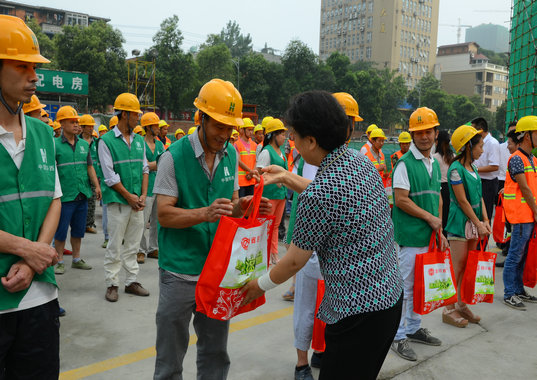 6月28日,四川省政協(xié)副主席、省總工會主席李登菊,省總工會黨組書記、副主席胥純,省國資委黨委副書記朱家德,省總工會黨組成員、副主席任遠明一行率省總工會“夏送清涼”慰問組,來到位于外曹家巷公司恒大項目看望慰問奮戰(zhàn)在一線的農(nóng)民工與項目職工。為他們送上清涼防暑用品,送來黨委、政府和工會對我們廣大建筑職工的關(guān)懷。集團領(lǐng)導(dǎo)董事長陳貴林,黨委書記劉平,總經(jīng)理楊斌,工會主席武勇一同參加了慰問。“送清涼”活動受省總工會委托,由武勇主持。公司總經(jīng)理趙崇賢、黨委書記朱軍、工會主席馮剛陪同參加了此次慰問活動。