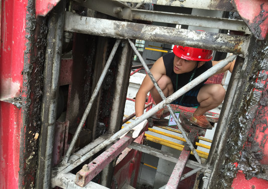檢查范圍包括:塔式起重機、施工升降機、井(門)架物料提升機和高處作業(yè)吊籃。在檢查過程中“小組”成員除了對機電設備維護臺賬資料和操作人員資質進行檢查之外,還爬上塔機頂端,檢查塔機的力矩限制器、重量限制器、小車限位器、回轉限位器的有效性。檢查塔機主卷鋼絲繩是否有斷絲斷股,排繩是否整齊,檢查剎車是否磨損進行檢查。對排繩滑輪、主卷揚鋼絲繩滑輪,小車鋼絲繩滑輪,磨損是否達到更換標準,鋼絲繩、滑輪是否缺潤滑油,手柄有無零位保護器,及駕駛室是否整潔等事項進行逐一檢查。