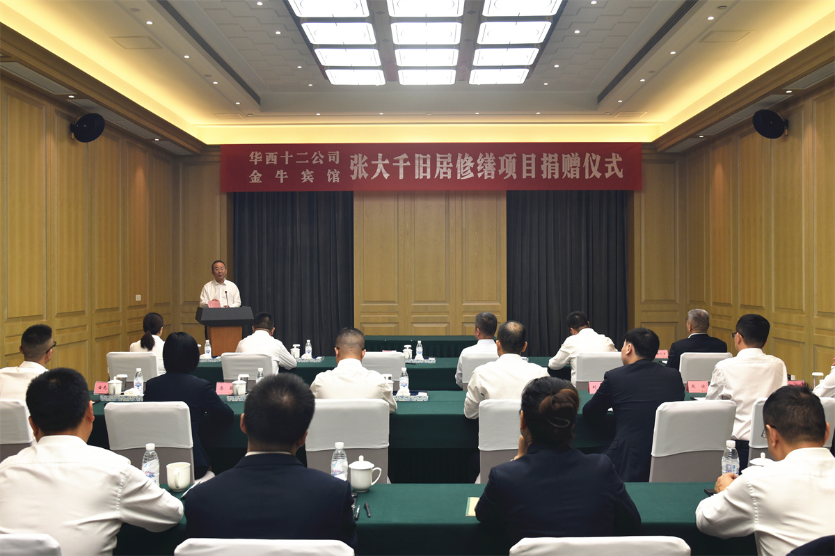 9月28日,華西十二公司向金牛賓館張大千舊居修繕捐贈儀式在金牛賓館天府樓7樓會議室舉行。金牛賓館在家領(lǐng)導(dǎo)及部門負(fù)責(zé)人,華西十二公司在家領(lǐng)導(dǎo)出席捐贈儀式。儀式由金牛賓館黨委副書記黃代勇主持。
