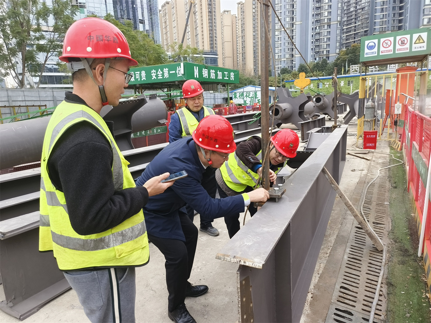 徐佳能一行首先查看了施工現(xiàn)場(chǎng),聽取了項(xiàng)目部對(duì)工程概況、施工進(jìn)度、安全質(zhì)量管控等方面情況的介紹。徐佳能對(duì)項(xiàng)目現(xiàn)階段總體工作表示肯定,要求項(xiàng)目部在施工生產(chǎn)過(guò)程中一定要注意安全,特別是在歲末年初,要堅(jiān)決杜絕安全事故的發(fā)生。
