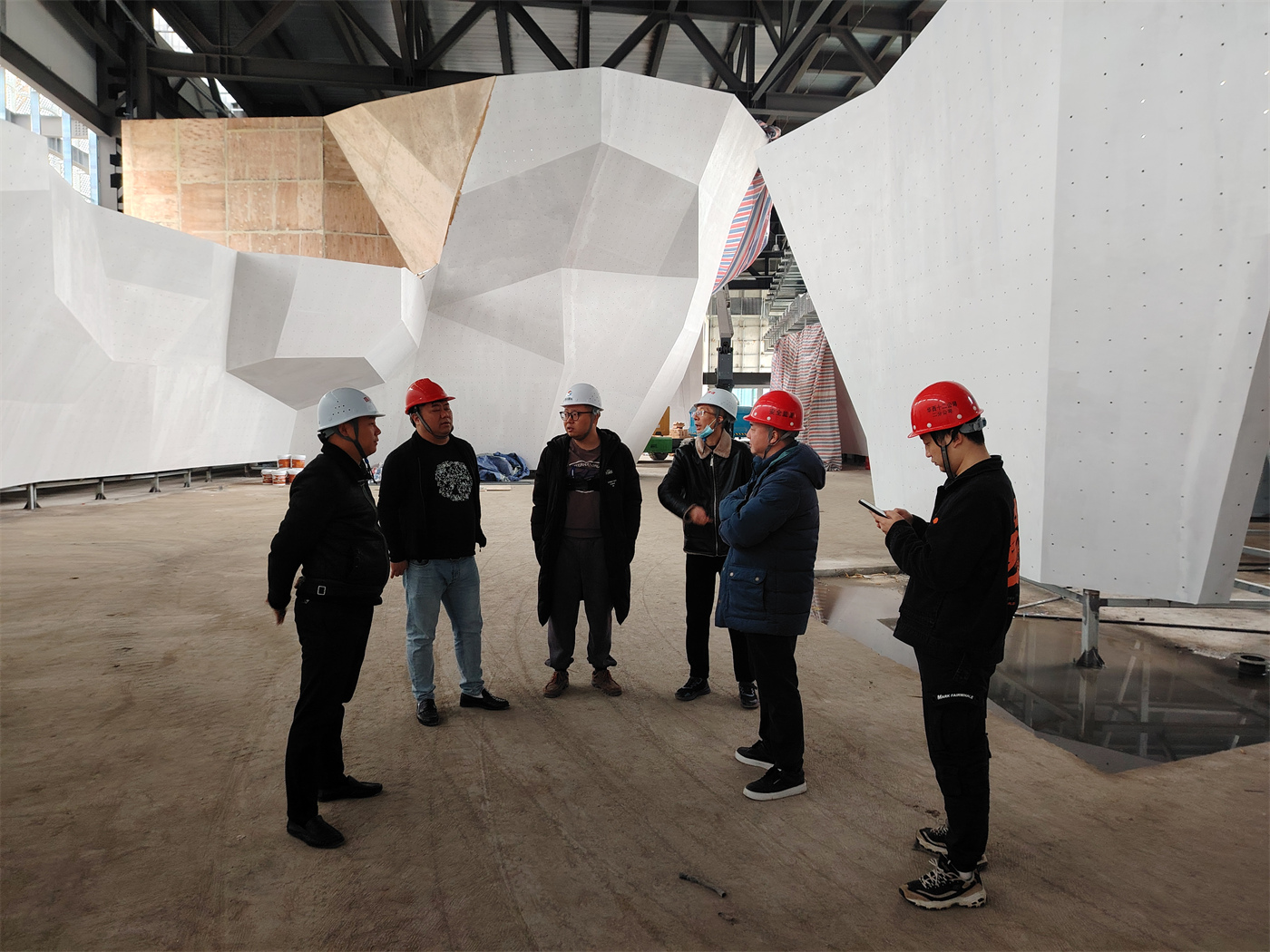 驗收組由設計、監(jiān)理、甲方及質(zhì)檢站組成,驗收組首先聽取項目部關(guān)于主體結(jié)構(gòu)工程質(zhì)量與自評匯報,在現(xiàn)場實地查驗過程中,各方專家嚴格按照驗收標準,對項目主體結(jié)構(gòu)進行了全面細致地檢查。經(jīng)過嚴格評估,項目主體符合設計及相關(guān)規(guī)范要求,驗收組對項目施工進度和質(zhì)量給予了認可,一致同意通過驗收。