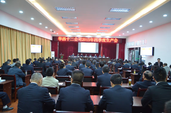 2015年11月6日,華西十二公司召開了2015年四季度生產(chǎn)會,公司領(lǐng)導(dǎo)、總經(jīng)理助理、三副總師、各部門負責人、工程部、材設(shè)部全體管理人員;各專業(yè)公司經(jīng)理、項目經(jīng)理、黨支部書記、技術(shù)負責人參加了此次會議。會議由公司工程項目管理部部長胡銳主持。