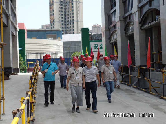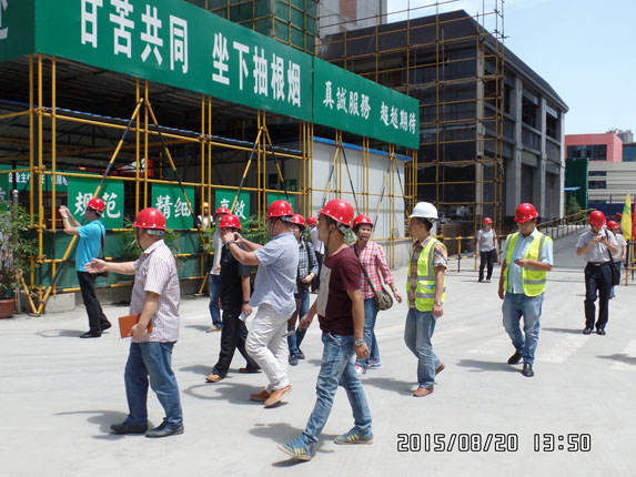2015年08月20日下午,廣東佛山市建委在成都市建委和成都市安監(jiān)站的陪同下來(lái)到我項(xiàng)目部所在地。樂(lè)天圣苑項(xiàng)目部項(xiàng)目經(jīng)理劉波、項(xiàng)目總工程師馮小衛(wèi)和項(xiàng)目書記王祝君代表樂(lè)天圣苑項(xiàng)目部全體參建人員對(duì)廣東佛山市建委表示了熱烈歡迎。