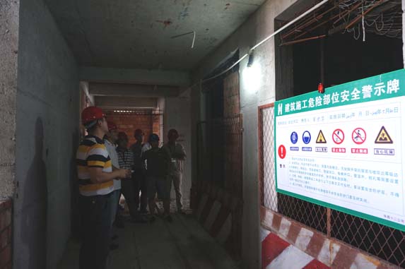 隨后檢查人員根據(jù)不同的檢查內(nèi)容在項目部人員的帶領(lǐng)下分組展開檢查。他們來到施工現(xiàn)場,對場容場貌、揚塵措施、臨時用電措施、施工機械運行、基坑作業(yè)安全防護、模板工程、高處作業(yè)及臨邊洞口防護措施、消防制安措施、民工宿舍和民工食堂等逐一進行檢查和詢問,對于項目部綠色工地的節(jié)材措施、節(jié)地措施、節(jié)水措施、節(jié)能措施、環(huán)境保護措施也進行了檢查指導(dǎo)。
