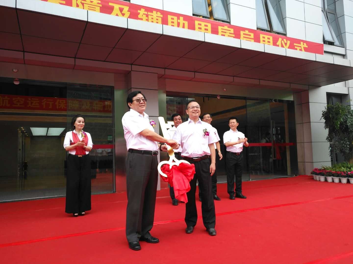 西南設(shè)計(jì)院總經(jīng)理張寬在致辭中對保障用房的啟用表示祝賀。四川航空股份有限公司董事長李海鷹在致辭中對各單位的到來表示歡迎,同時(shí)對保障用房的順利啟用表示感謝。十二公司總經(jīng)理趙崇賢作為施工單位代表與四川航空股份有限公司書記雷財(cái)水進(jìn)行了鑰匙交接,雙方相互表達(dá)了感謝以及對保障用房啟用的祝賀。趙崇賢總經(jīng)理和朱軍書記以及其他單位代表參加了四川航空運(yùn)行保障及輔助用房剪彩儀式。