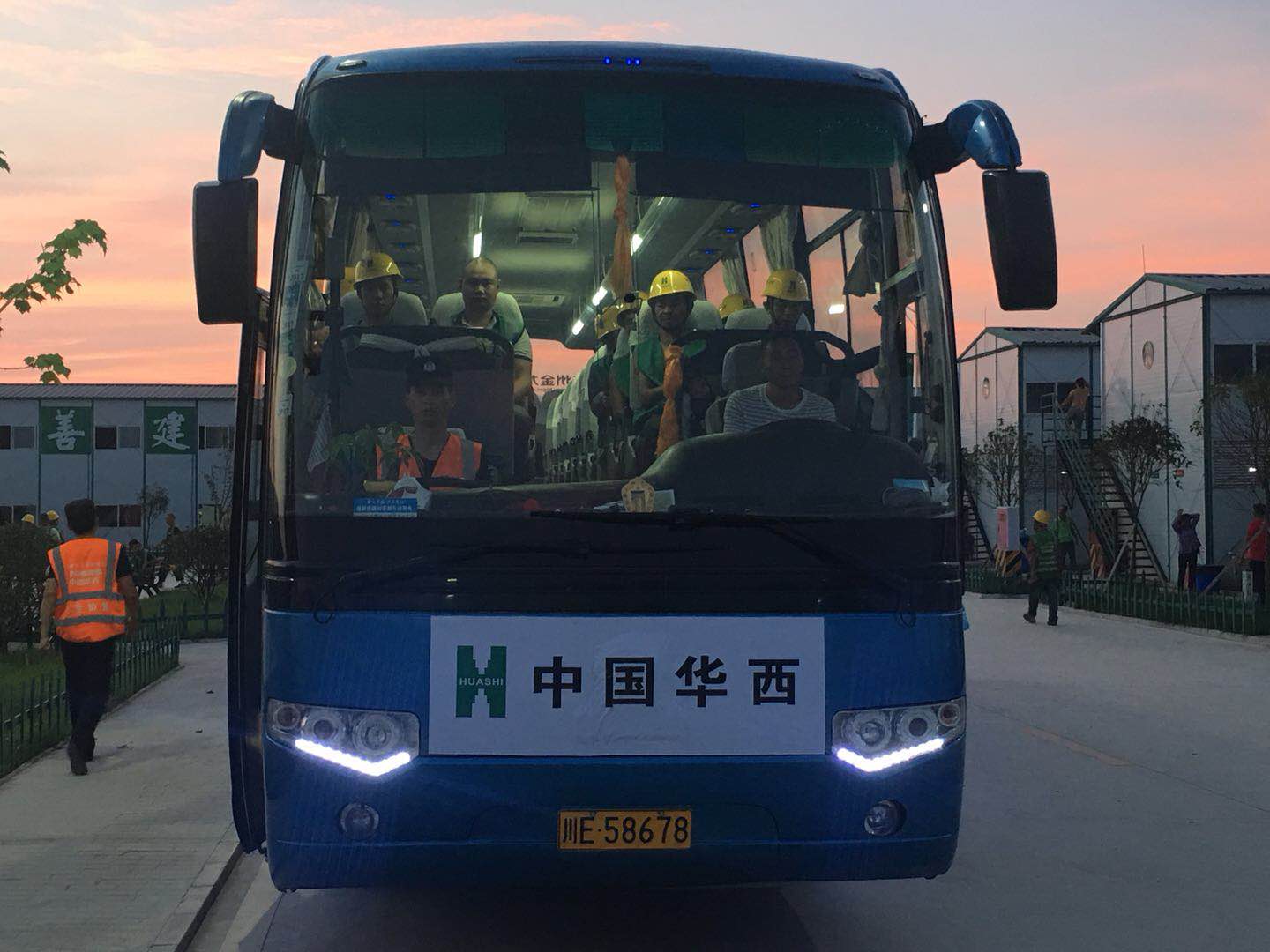 (通訊員:楊梅)“大家排隊上車去工地了!”早上六點左右,只見兩輛印著“中國華西企業(yè)股份有限公司”嶄新的藍色和粉色大巴車停在華西職工之家大門處,工友們一個個有序地排隊上車,喜悅之情溢于言表。