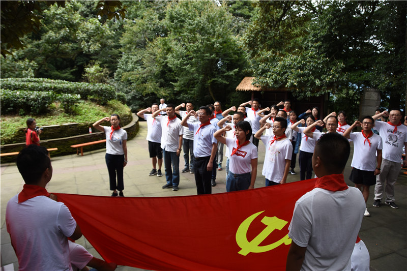 在紅軍百丈關(guān)戰(zhàn)役紀(jì)念館門前,樹立著一面鮮紅的黨旗。分公司黨員同志們佩戴著紅色的領(lǐng)巾和黨徽,在老師的帶領(lǐng)下,集體合唱了國歌,并依次為革命先烈們獻(xiàn)上了一束束鮮花。面對鮮紅的黨旗,黨員同志們整齊劃一的舉起右拳,洪亮有力的重溫了入黨誓詞。一句句鏗鏘的誓詞,使黨員同志們再次接受了心靈的洗禮。隨后,分公司黨總支副書記、總經(jīng)理肖鑫文為大家講解了毛澤東同志的革命生涯,普及了一些黨史知識,并結(jié)合分公司現(xiàn)在的生產(chǎn)經(jīng)營實際情況,要求分公司黨員同志們要有高度的忠誠度,堅持不怕苦不怕累的革命精神,對黨忠誠,對企業(yè)忠誠。