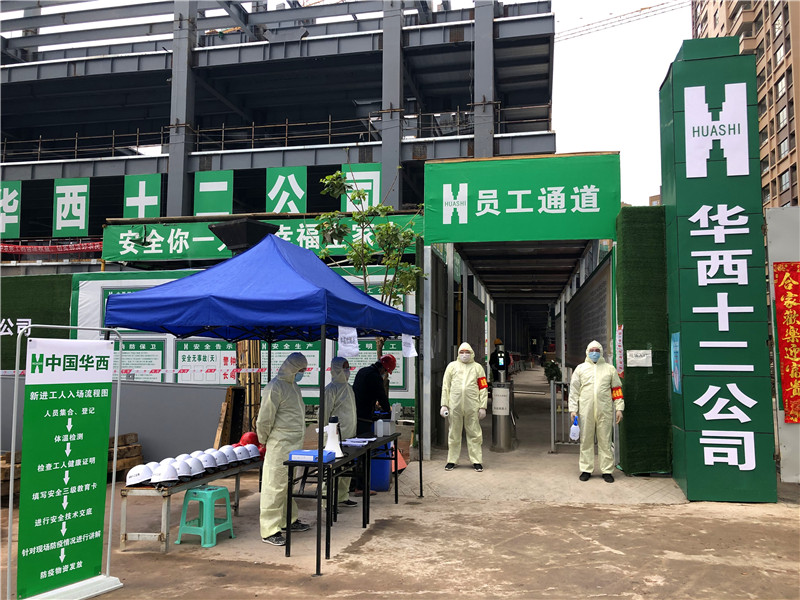 生活區(qū),施工現(xiàn)場內嚴格實行制度化管理。施工現(xiàn)場內采用人臉識別實名制系統(tǒng),場內專人進行巡查,他們雙眼無時不刻都在四周掃射檢查有無未正確佩戴口罩的工人們,體溫槍在手定期給正在作業(yè)的工人測體溫并做好隨機臺賬登記。生活區(qū)門口擺放著一張桌子,下班了人們間隔排隊,登記、量體溫、消毒,他們每天兩點一線穿梭在工地與生活區(qū)之間,除上班之外,生活區(qū)只進不出?;厣顓^(qū)的路上,由我們華西的管理人員帶隊,兩點一線防止人員到處流動,也為保障工人兄弟們的健康環(huán)境筑起了第三道疫情防控戰(zhàn)線。